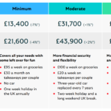 必要な金額の目安ですが、標準的支出パターンだと、年1回ヨーロッパに2週間の旅行と数日間の国内旅行、家の修繕費用と衣料費など込みで、単身で年間23,000ポンド、夫婦で34,000ポンドという計算になります。これは、住宅ローンを払い終えている前提の金額です。国民年金は満額(35年間の支払い)で年間約10,000ポンド受け取るので、不足分を確定拠出型年金を含む自己資金で賄うことになります。