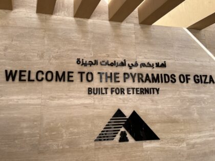 いよいよ、ピラミッドへ。河を渡るとわりとすぐに見えてきます。世界史の授業のいっちゃん最初に出てくるエジプト古代文明の象徴ですね。2025年4月から見学システムが変わったそうで、中に入ると巡回するバスに乗ります。そして、バス停ごとに降りてピラミッドの周りを自由に歩いたり写真を撮ったりできます。3つのピラミッドは違う大きさに見えますが、土台の高さが違うだけで同じ大きさとのこと。すべて正確に北向きに並んでいるのだそうです。近づいてみると、1つ1つの岩は巨大ですが、表面はぼこぼこしています(実際に触れます)。これはあとから表面を違う素材でコーティングする予定だったのができなかったからだそうです。中には入りませんでしたが、中に道や部屋があるというのが驚きです。また、大きいピラミッドのそばに2つ小さいピラミッドがあるのも知りませんでした。このギザのピラミッドは世界で一番大きいそうです。