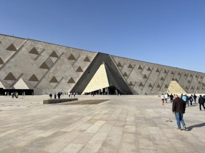 カイロ2日目は、去年の年末に完成したばかりの大エジプト博物館に行きました。開館予定が大幅に遅れていて、これがオープンするのを待っての旅行です。国家プロジェクトのはずですが、カイロ市内からの公共交通機関がないというお粗末さ。場所はピラミッドから約3キロ北にあり、ツアーに入っていない場合はタクシーで行くしかありません。あやしいタクシーもたくさんあるので、ホテルの人に呼んでもらいました。行きは900エジプトポンド。帰りは直接シタデルまで行ったので、USD 15でした。