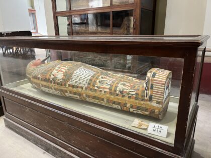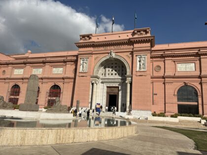 カイロ最終日は市内のエジプト考古学博物館に行きました。ツタンカーメン王の黄金のマスクなどは、もともとここに展示されていたそうで、建物自体が古く歴史を感じさせます。ホテルから徒歩で向かいました。