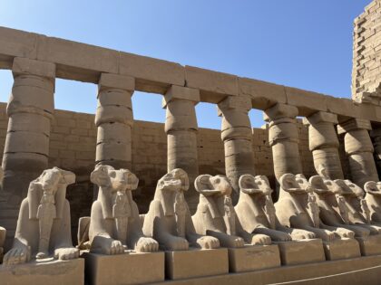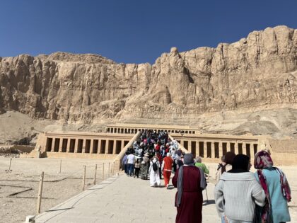 王家の谷を後にし、次に行ったのはハトシェプスト女王の神殿です。ここも砂漠の中に現れる壮大な遺跡です。当時女性が王になるというのは想像を絶するほど大変なことだったそうで、女王は付け髭などの男装をし、なめられないようにものすごい努力をしました。彼女の彫像も男性の姿になっています。神殿跡は太い柱が124本もあり、壁の状態も良く、素晴らしかったです。