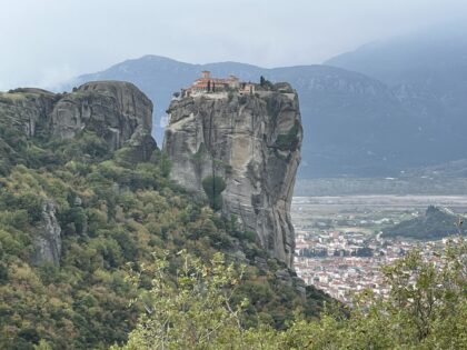 3~5日目まではメテオラを訪問しました。テサロニキからバスを乗り継いで3.5時間の超不便なところにあるカランバカという町から徒歩やツアーで回れます。レンタカーでも所要時間は同じです。バス代は2人で往復77ユーロくらいでした。行きは満席だったのでハイシーズンは早めにチケットを買った方がいいと思います。オンラインで買えますが、キャンセルになった時の払い戻しなどのリスクを考えて窓口で買いました。テサロニキやアテネから弾丸日帰りツアーもありますが、私は現地に泊まって良かったです。バスは時刻表通りに運行され、信頼できます。